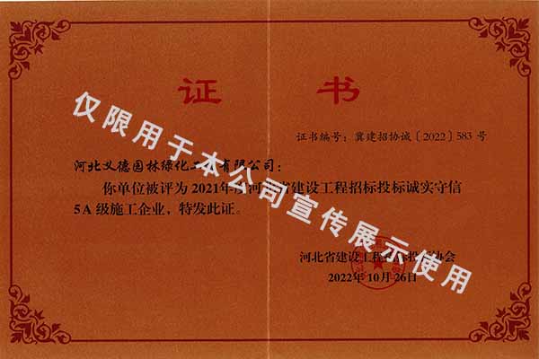 2021年度誠實守信招標投標5A級