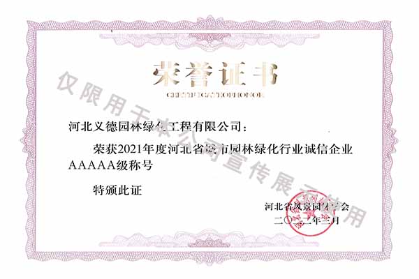 2021年度河北省城市園林綠化行業(yè)